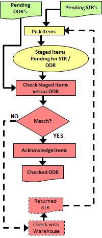 Some supply chain professionals (consultants especially) use different shapes to distinguish the kinds of processes in their maps. Rectangles, for instance, may represent a transformation process; a triangle is a checkpoint or a quality inspection; a circle is a starting point, endpoint, or a reference to another flow map. Lines can be solid for physical flow or dotted for information flow: