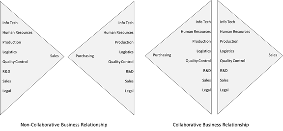 - Collaboration is about multi-function cooperation, not just one department with another. It’s about representatives from every relevant function of an organisation cooperating with counterparts from another. Suppliers and clients in collaboration wouldn’t be limited to price and order issues; they’d be discussing inventories, payables, quality, and operations reliability;