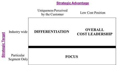 According to Porter, an enterprise gains competitive advantage via either of the following strategies:
