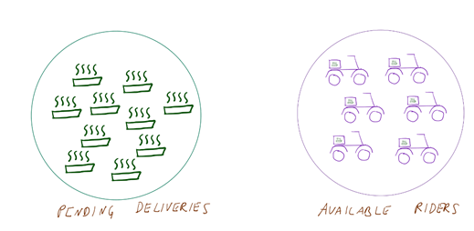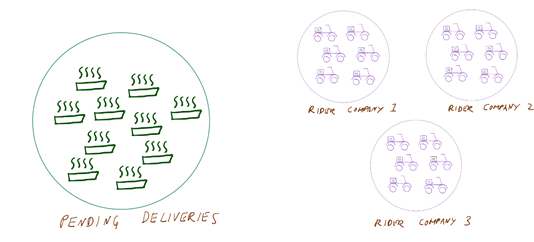 Availability of riders is not only due to factors such as absenteeism and driver population but also very much in lockstep with the number of pending deliveries.