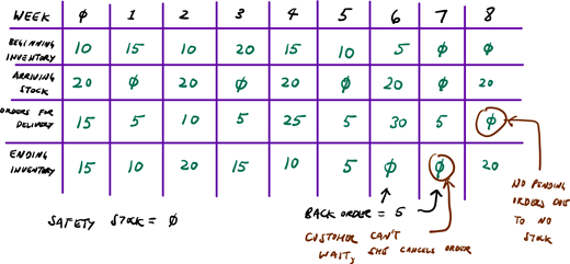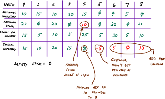 If, however, enterprises are selling expensive stuff like precious metals, are in the business of shipping thousands of items like automotive parts, or are marketing products with short shelf lives, managers would not keep too much on hand to avoid tying up capital in inventory. Managers wouldn’t keep any safety stock and would rely on scheduled arrivals when committing ATP to customers.