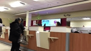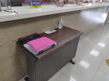 Approaching the teller counter with my deposit bag, I noticed a table beside the counter. It had a spray bottle of alcohol and it gave me a place to put my bag on.