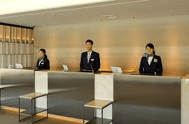 In Japan, tables beside service counters are a common sight, especially at hotels. The tables allow registering guests a place to put their bags on which makes it convenient to get their paperwork for the hotel reception.