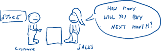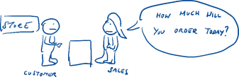 And when the customer decides to order (3rd stage), he or she will ask the sales person once again: