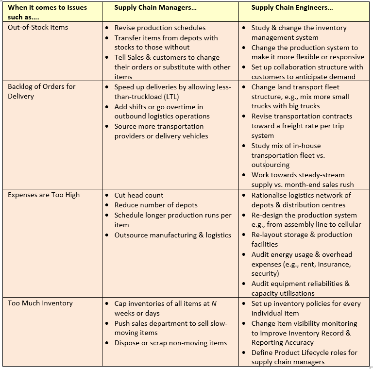 Supply chain engineers become more worthy when they tackle issues. Whereas supply chain managers quick-fix or implement short-term remedies, supply chain engineers define problems and design long-term productive solutions.