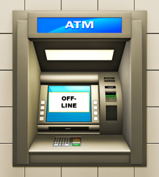 I went to the bank to cash a check. The teller said there was no cash available. She also said the automatic teller machine (ATM) also had no cash and was off-line.